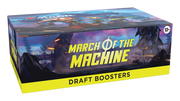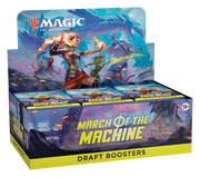 The March of the Machine Draft Booster Box contains 36 March of the Machine Draft Boosters. Each Draft Booster contains 15 cards and 1 token/ad card or Helper card, including 1–2 card(s) of rarity Rare or higher and 3–5 Uncommon, 8–9 Common, and 1 Land cards. Traditional Foil Borderless Mythic Planeswalker in <1% of boosters. Traditional Foil of any rarity replaces a Common in 33% of boosters.