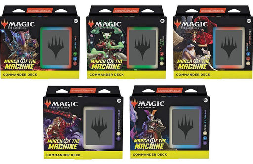 View full detailsContains 5 Commander decks. each commander contains : 100-card ready-to-play March of the Machine Commander Deck 2-card Collector Booster Sample ...