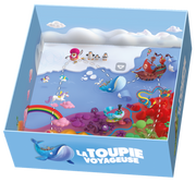 LA TOUPIE VOYAGEUSE est un jeu de parcours de toupie sur 8 mondes merveilleux aux multiples inspirations : crocodile africain, dragon chinois, baleine bleue, fées pirates, Alice au pays des merveilles, lampe d'Aladdin, manchot en roller, et licornes. LA TOUPIE VOYAGEUSE est un jeu solo ou coopératif pour tout âge dès 6 ans. Chaque mission représente un parcours que les joueurs vont devoir effectuer avec une toupie en la passant d’un plateau à un autre. Ils représentent 8 mondes merveilleux en relief avec plusieurs cibles. Au début de chaque mission, les joueurs identifient ensemble les cibles à atteindre et se répartissent les plateaux indiqués. Le premier joueur lance la toupie avec l’aide du propulseur et la déplace en inclinant son plateau pour la diriger vers sa cible. Une fois la cible atteinte, le joueur guide la toupie vers la sortie pour la faire passer sur le plateau tenu par le joueur suivant. La dynamique de relais entre les joueurs se poursuit ainsi jusqu’à la réalisation complète de la mission. La difficulté des défis s’accroit progressivement. Des trophées autocollants permettent de valider chaque mission réussie !