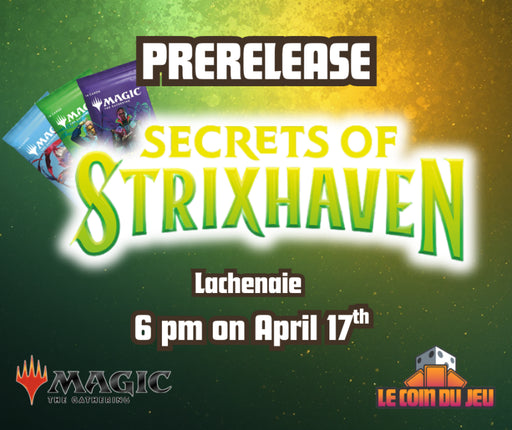 View full detailsMTG Secret of Strixhaven prerelease You must have a partner to participate, this is a "Two-Headed Giant" event Includes a prerelease kit. This is a...