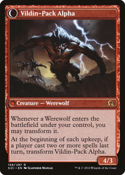 Whenever a Werewolf enters the battlefield under your control, you may transform it. At the beginning of each upkeep, if a player cast two or more spells last turn, transform Vildin-Pack Alpha.