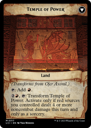 (Transforms from Ojer Axonil, Deepest Might.) T: Add R. 2R, T: Transform Temple of Power. Activate only if red sources you controlled dealt 4 or more noncombat damage this turn and only as a sorcery.