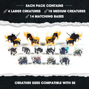 - 14 créatures : 5 squelettes, 4 zombies, 2 chevaliers de la mort, 2 cauchemars et 1 liche